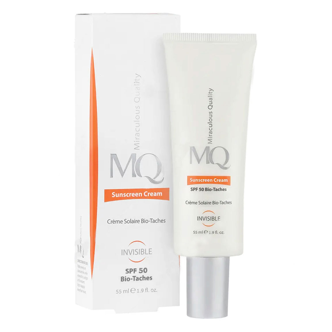 کرم ضد آفتاب بی رنگ ضدلک و روش کننده ام کیو بایوتچ spf50 BIO TACHES حجم 55 میل