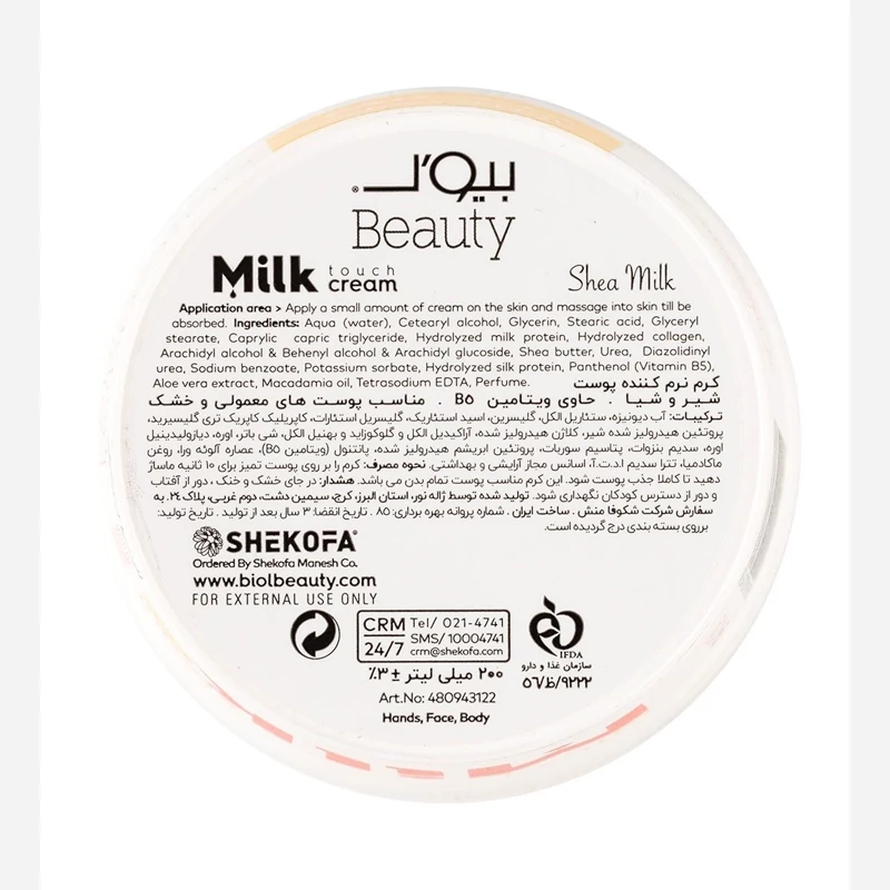 کرم میلک شیر و شیا بیول مناسب پوست نرمال تا خشک کاسه ای200میل