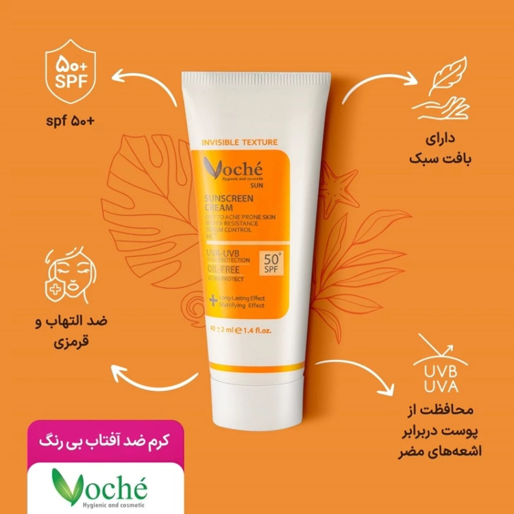 کرم ضد آفتاب جزو مهمترین محصولات مراقبت از پوست بوده که تاثیر بسیار زیادی در حفظ سلامت و زیبای پوست دارد. کرم ضد آفتاب وچه یک محصول مناسب برای پوستهای چرب و مستعد آکنه است. این ضد آفتاب بافت بسیار نرم و سبکی دارد و بهراحتی در لایههای عمیق پوست نفوذ میکند. ضد آفتاب وچه این توانایی را دارد که روند پیری پوست بر اثر تابش نور مستقیم خورشید را کاهش دهد و از ایجاد لک و خطوط ریز و درشت در پوست نیز جلوگیری کند. با مصرف این محصول دیگر نگران آفتاب سوختگی و التهابات پوستی نیز نخواهید بود. کرم ضد آفتاب وچه مخصوص پوستهای چرب و آکنه دار دارای spf 50 بوده و حجم آن 40 میل است