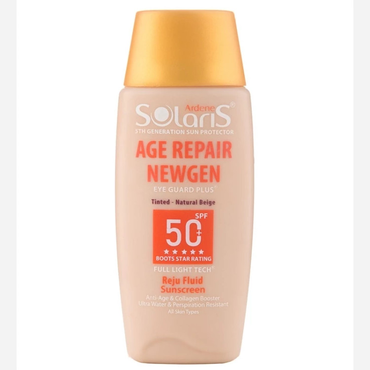 فلوئید ضد آفتاب آردن سولاریس SPF 50 مناسب پوست دارای چروک سطحی رنگی لایت حجم 75 میل age repair newgen