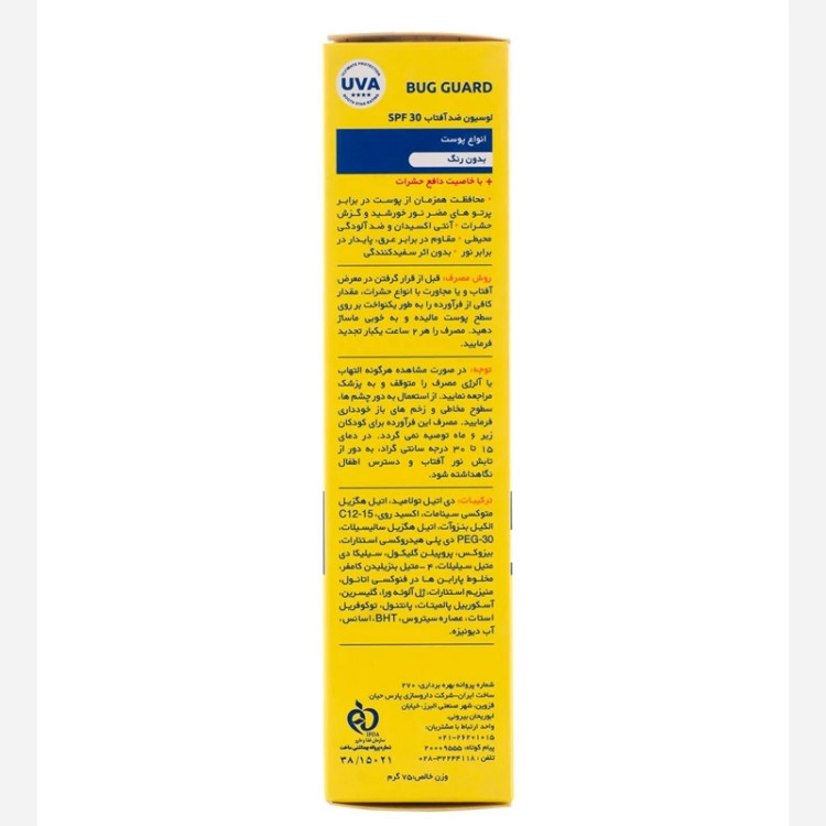 نحوه استفاده: قبل از قرارگیری در معرض آفتاب یا محیط پرحشره، مقدار کافی از لوسیون را به طور یکنواخت بر روی تمام نواحی پوست صورت و بدن بمالید و ماساژ دهید.