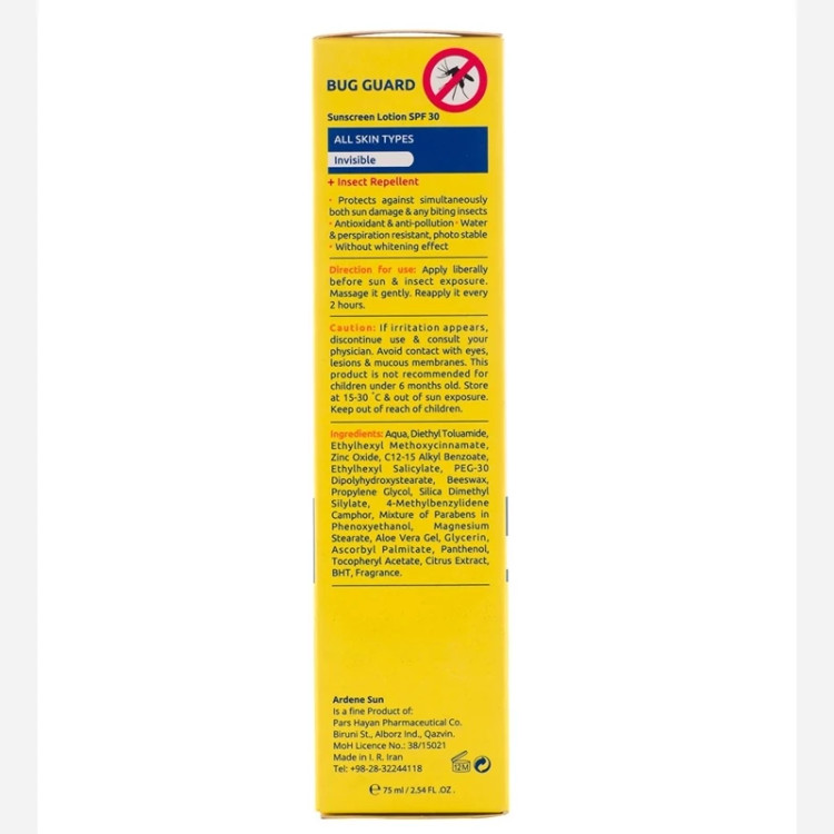 لوسیون ضد آفتاب آردن SPF30 با خاصیت دافع حشرات حجم 75 میلی لیتر