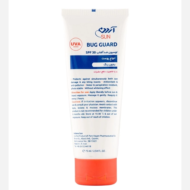 لوسیون ضد آفتاب آردن SPF30 با خاصیت دافع حشرات حجم 75 میلی لیتر