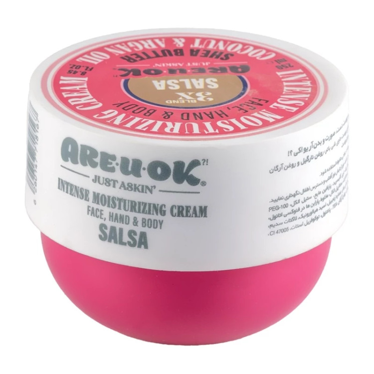 🔴 کرم مرطوب کننده قوی آر یو اوکی (Are U OK) مدل Salsa | با روغن آرگان، شی باتر و نارگیل | حجم ۲۵۰ میلیلیتر