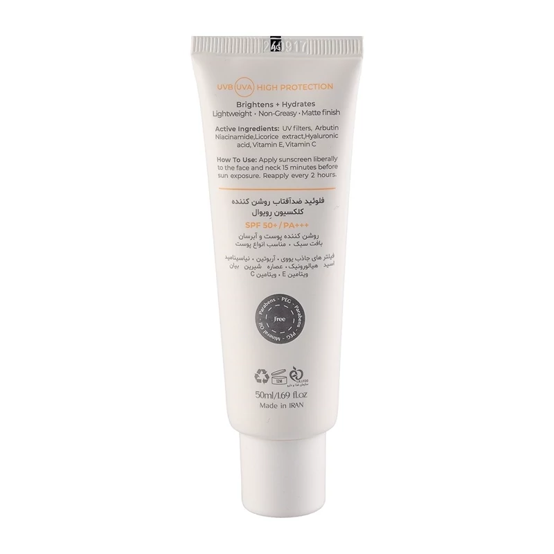 فلوئید ضد آفتاب روشن کننده رویوال مدل کلکسیون با SPF50 مناسب انواع پوست حجم 50 میلی لیتر