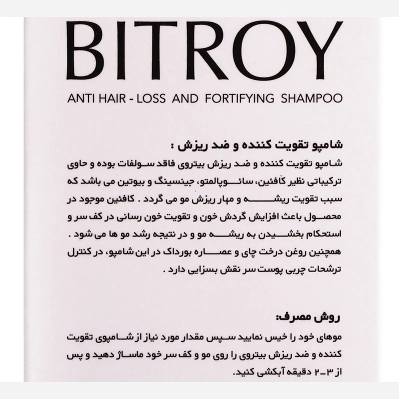 ✨ شامپو تقویت کننده و ضد ریزش مو بیتروی (جینسینگ، کافئین و سائوپالمتو) - فاقد سولفات