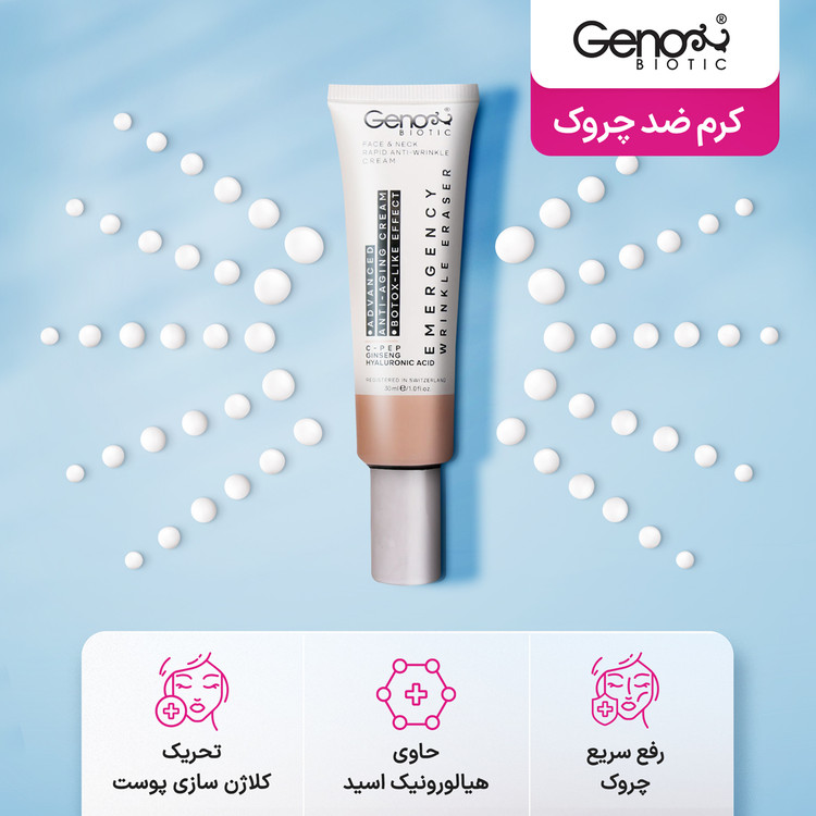 کرم ضد چروک فوری صورت و گردن ژنو بایوتیک حجم 30 میلی لیتر