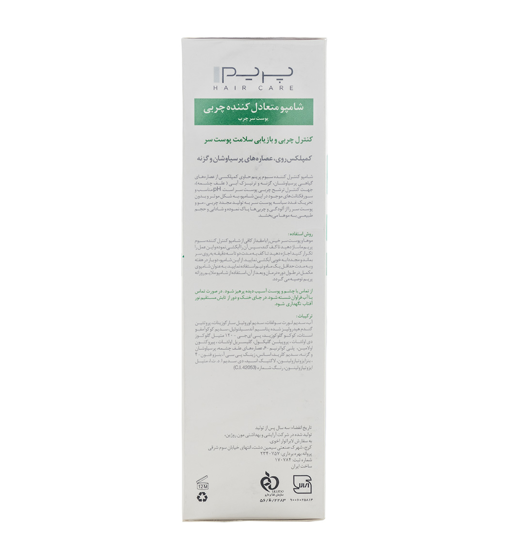 شامپو کنترل کننده چربی سر پرایم مدل اس پلاس مناسب موهای چرب 250میل