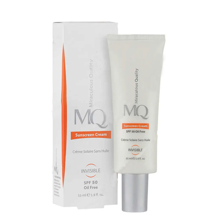 کرم ضد آفتاب ام کیو MQ بی رنگ با SPF50 مناسب پوست چرب و مستعد جوش و آکنه حجم 55 میلی لیتر
