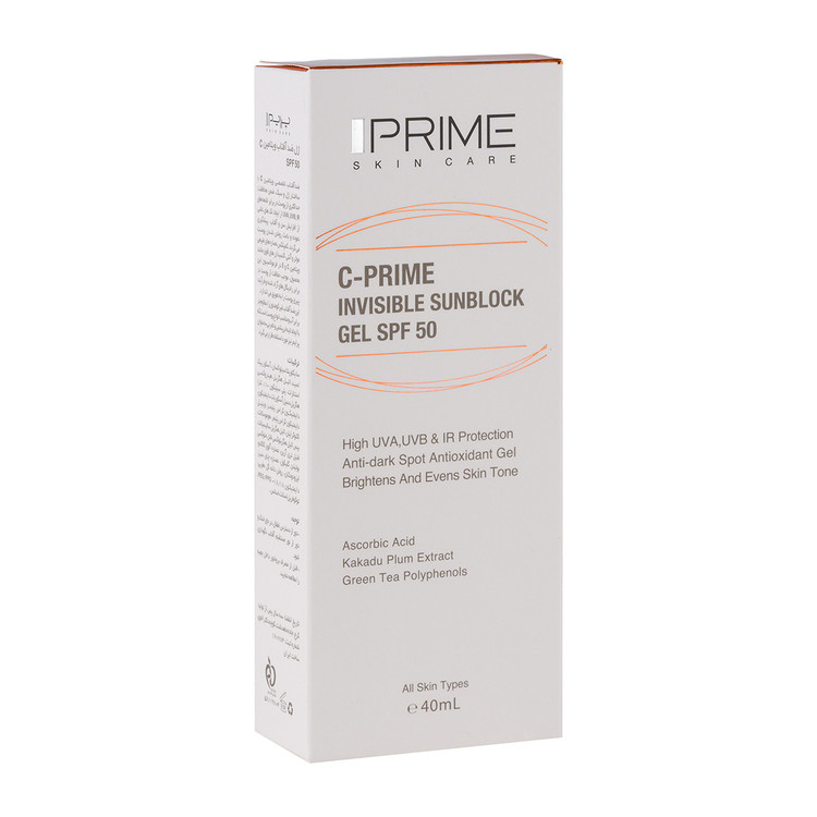 ژل ضد آفتاب پرایم بی رنگ SPF50 حاوی ویتامین سی حجم 40 میل