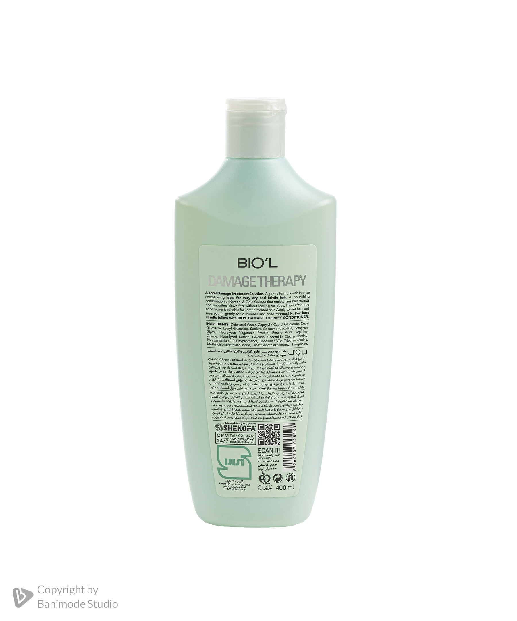 شامپو فاقد سولفات بیول BIOL مدل Damage Therapy مناسب موی خشک و آسیب دیده حجم 400 میلی لیتر