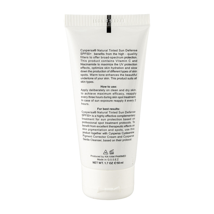 کرم ضد آفتاب رنگی سیسپرسا بژ طبیعی مدل روشن کننده با SPF50 حجم 50 میلی لیتر