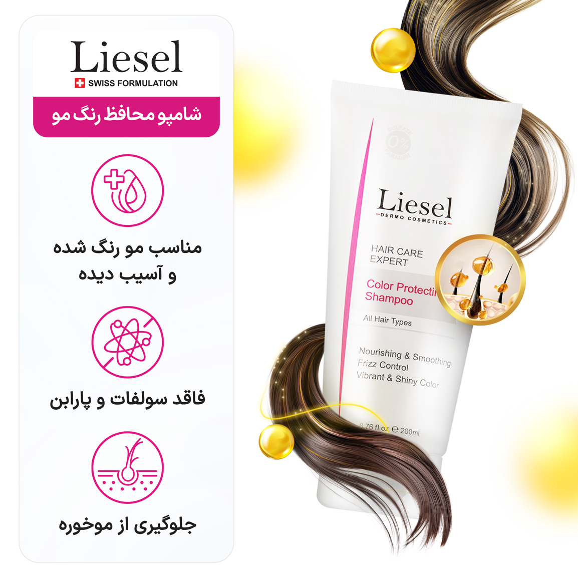 شامپو تثبیت کننده موهای رنگ شده بدون سولفات و پارابن لایسل Liesel اورجینال 200 میل