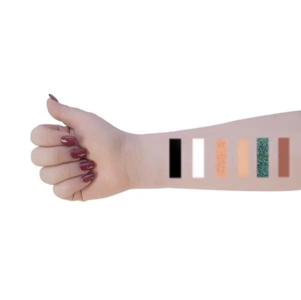 ویژگی ها: شامل 6 رنگ مات و اکلیلی تیره و روشن، بافت نرم، پیگمنت بالا و رنگ دانه های قوی، خاصیت پخش شوندگی بالا، ماندگاری طولانی مدت، طیف رنگی خاص و متنوع، دارای آینه داخلی