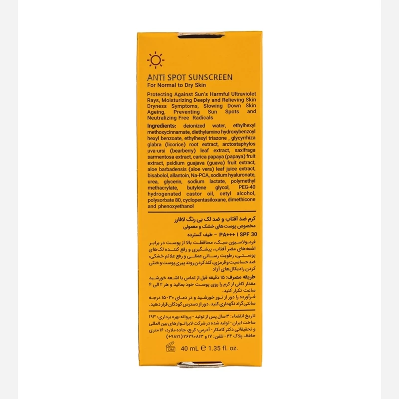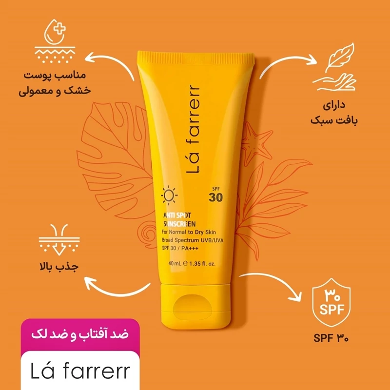کرم ضد آفتاب و ضد لک بی رنگ لافارر مدل SPF30 مناسب پوست نرمال و خشک حجم 40 میلی لیتر