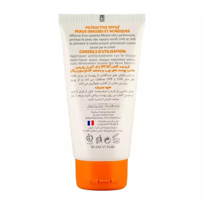کرم ضد آفتاب بی رنگ ژاک آندرل پاریس حاوی نرم کننده SPF 50 مناسب پوست چرب ومختلط مستعد آکنه حجم 50 میلی لیتر