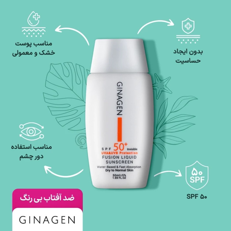 ضد آفتاب بی رنگ ژیناژن مناسب پوست خشک و نرمال انقضا 1406